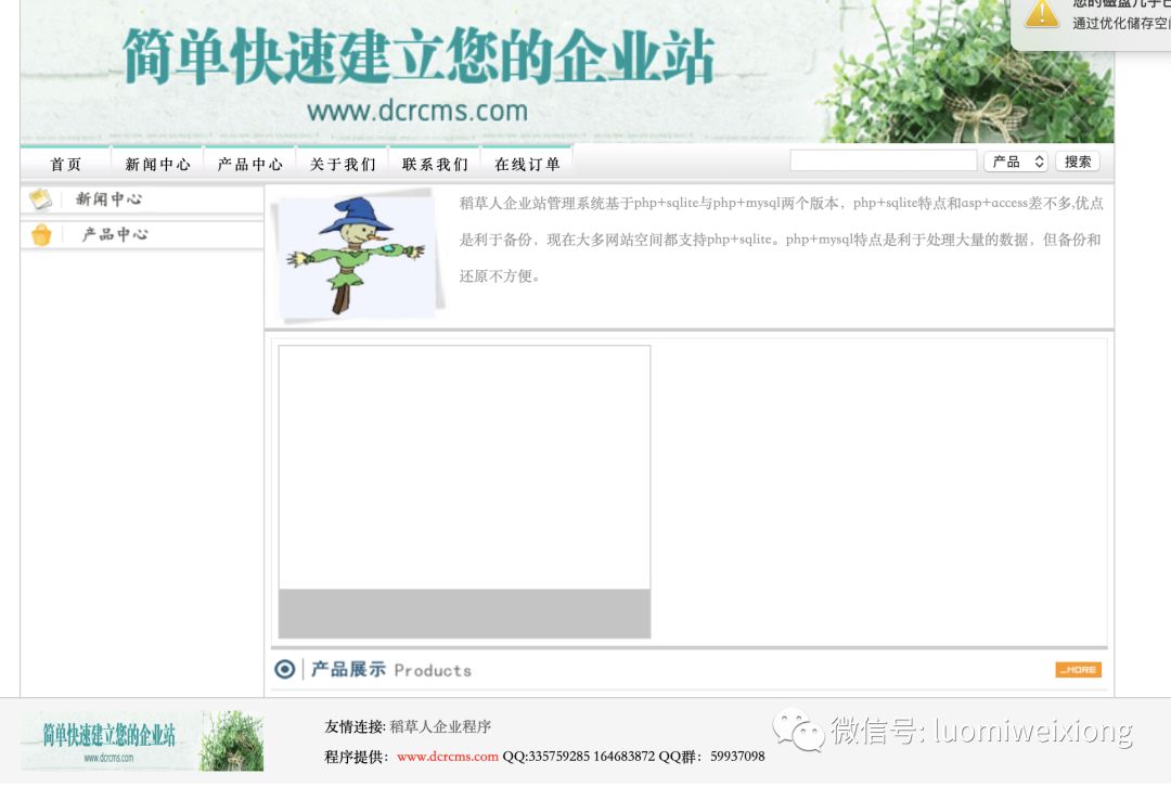 简介:稻草人cms基于PHP+Sqlite/MySQL的开源简单小巧的免费企业网站系统