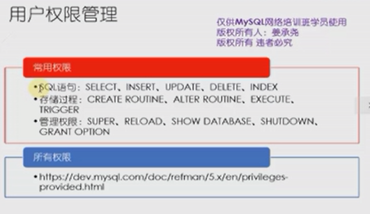 mysql> set password = '123';                ####改密码    set password = password("123456")