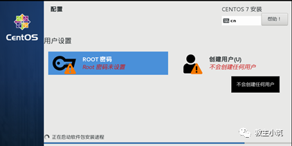 配置完成后选择“开始安装”。安装过程中可以设置root密码。root是Linux中的默认管理员账号,相当于windows的administrator用户,所以建议设置较安全的密码。另外可暂时不创建新用户。