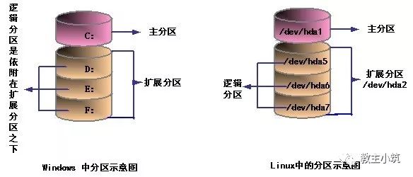 另外,Linux对于分区的使用也与Windows由很大区别: