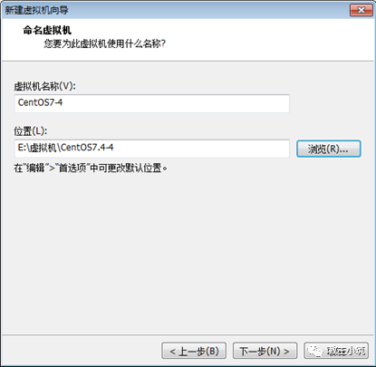指定虚拟机机安装位置。(虚拟机名即安装完毕后vmware界面内显示的该虚拟机标签。位置标示该虚拟机在物理主机的实际存放位置,建议手动指定到常用位置下,以便于后期管理)