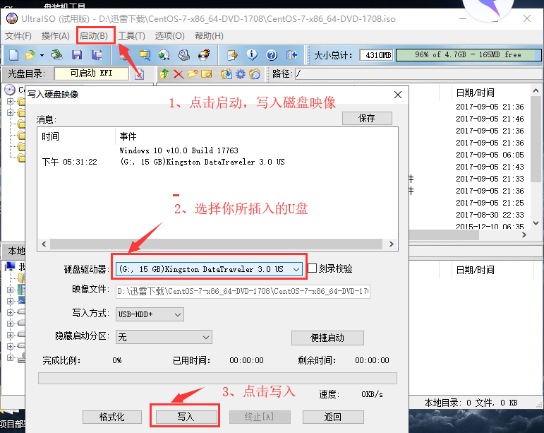 3、点击菜单栏启动下列表中“写入磁盘映像”。(备注:当点击写入后,会格式化你的U盘,重要信息请备份)