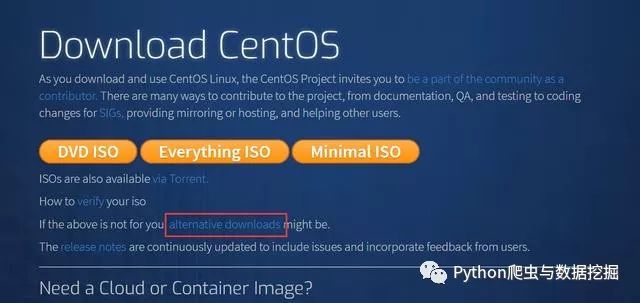 不要点击黄颜色背景的下载框,如:DVD ISO,Everything ISO,Minimal ISO,而是点击红色框框内的alternative downloads。