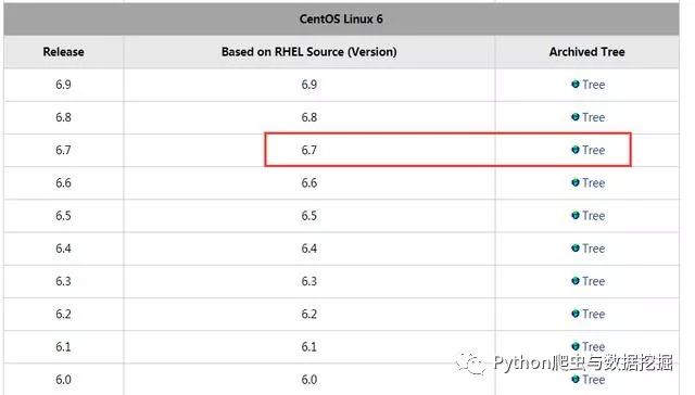 找到Centos6.7版本之后,点击右边的Tree,进入下一个界面。