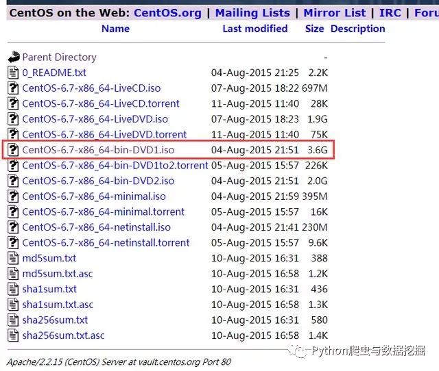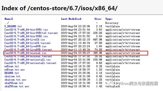 11、最后选择CentOS-6.7-x86_64-minimal.iso下载即可