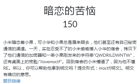 在moctf平台上,一道逆向题目很有意思,记录一下: