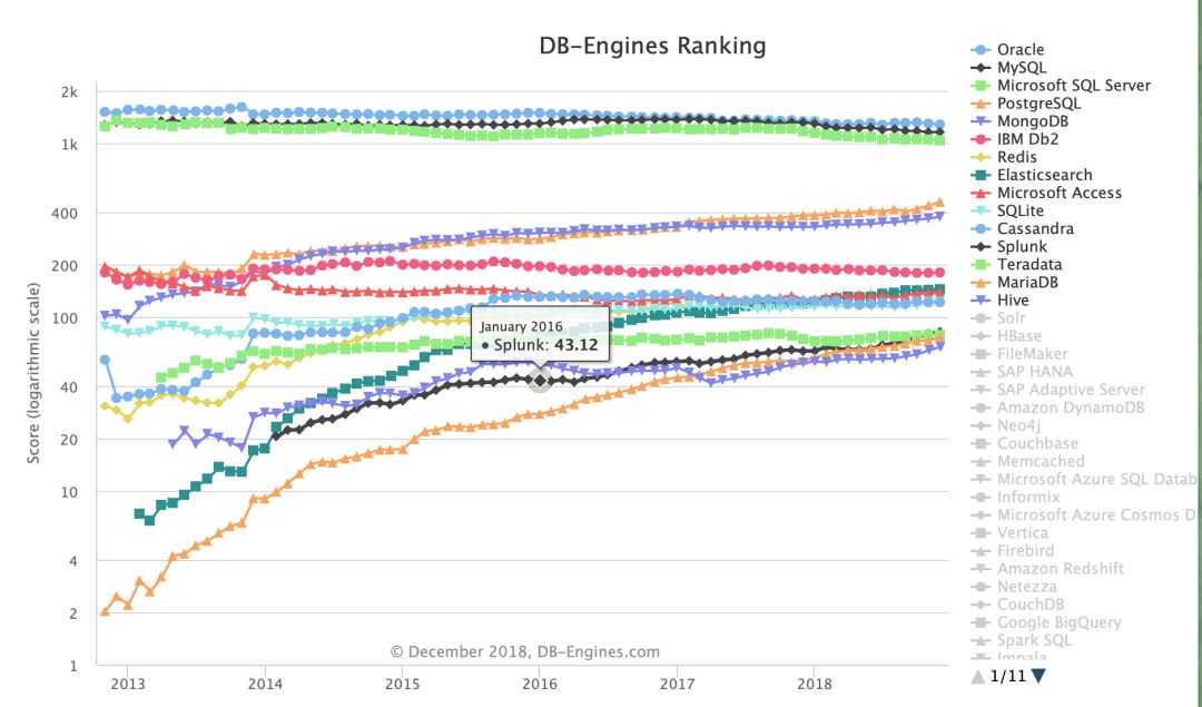 从图中可以看到,自2012年以来,Oracle、MySQL、SQLServer就一直占据着三甲。这甚至让我有点觉得我们每2-3个月来解读他们是不是值得。