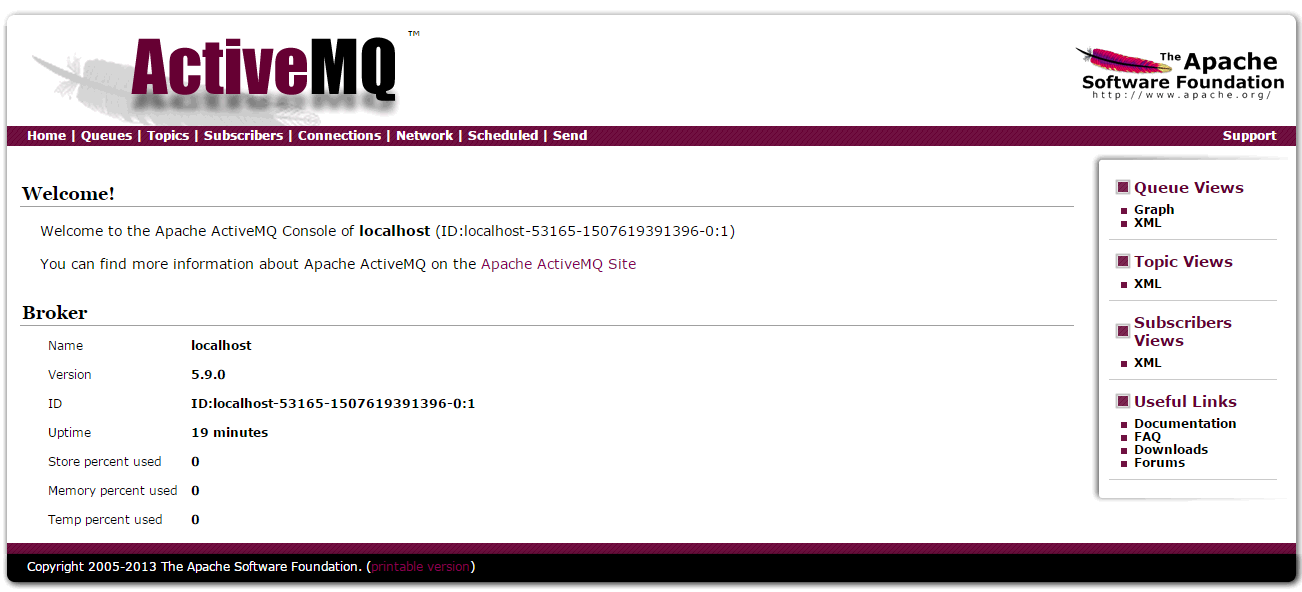 使用浏览器访问 ActiveMQ 管理应用, 地址如下: