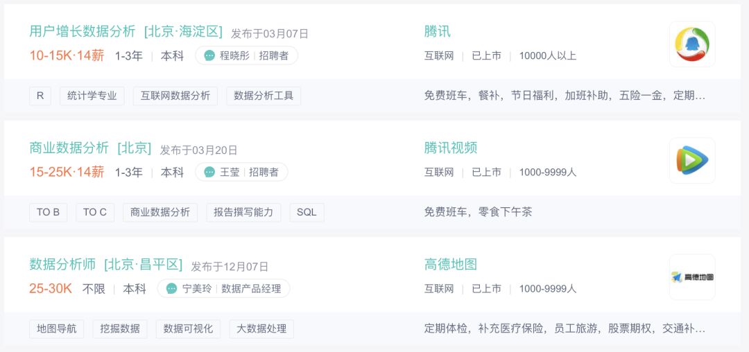 翻翻招聘岗位JD,不难发现,数据分析相关岗位,腾讯这样的大厂都愿意开出高达15k~25k的薪资,即便是实习生,薪资400/天的也很是正常滴。