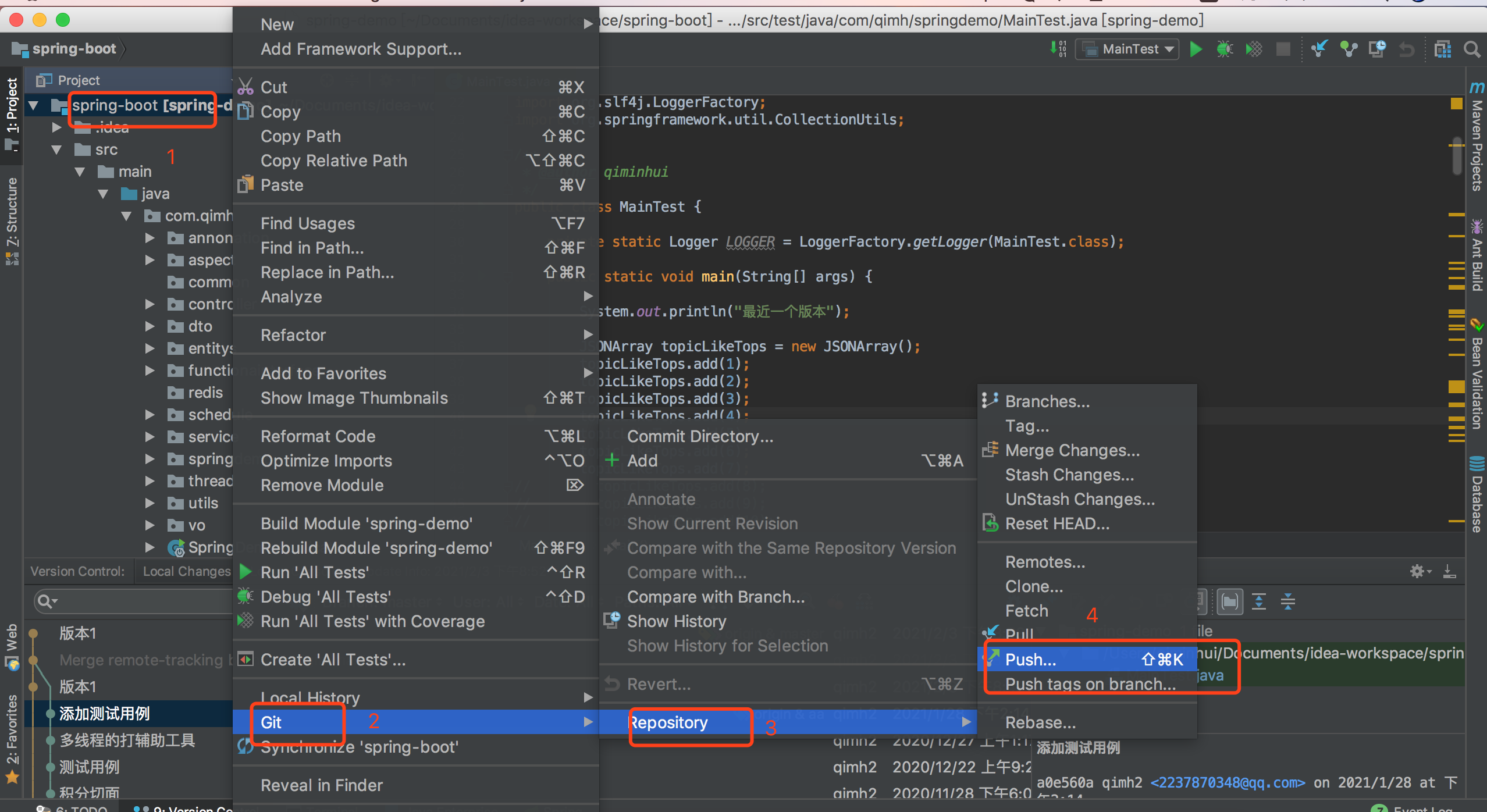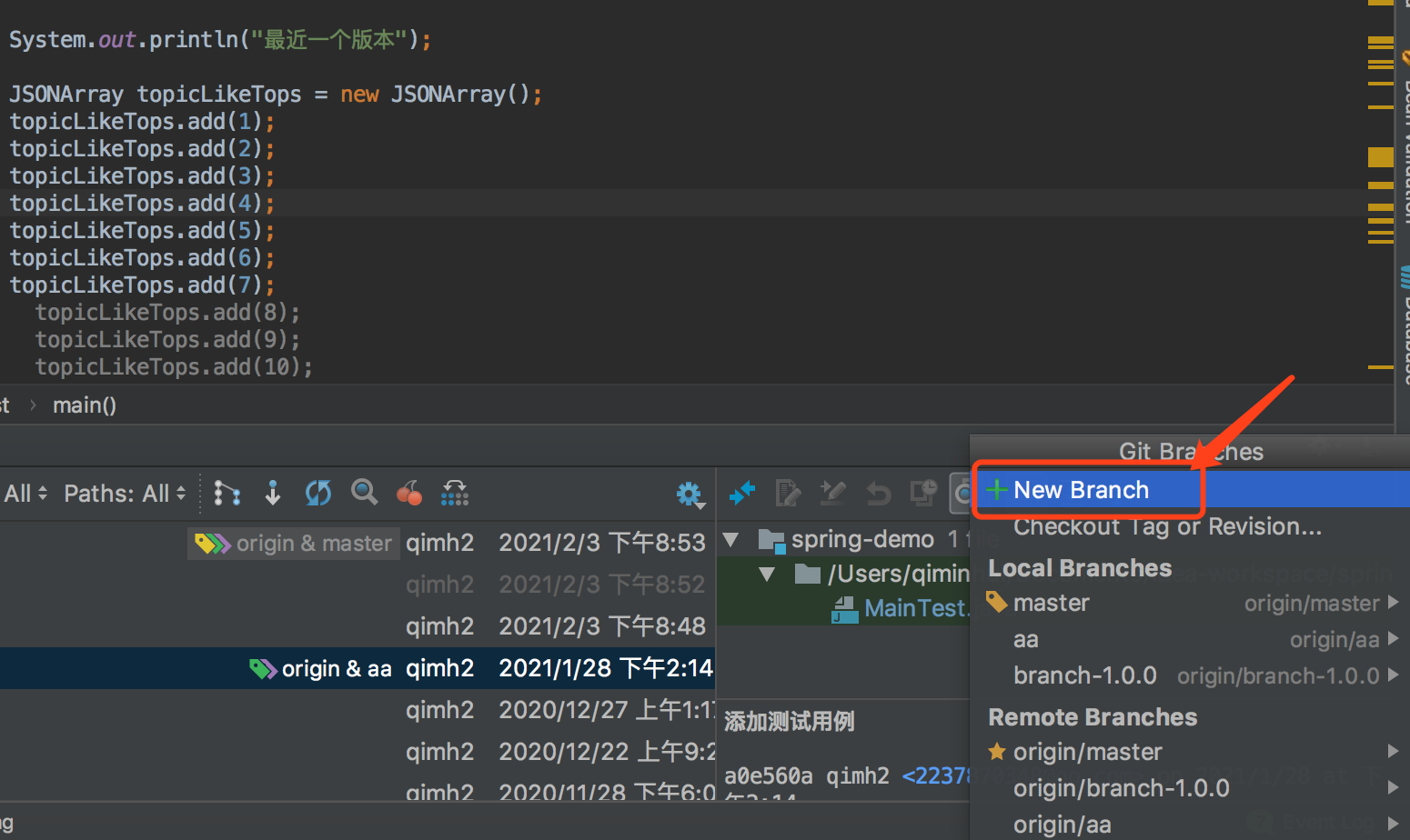 2.提交指定版本到远程仓库:创建新分支--》提交新分支
