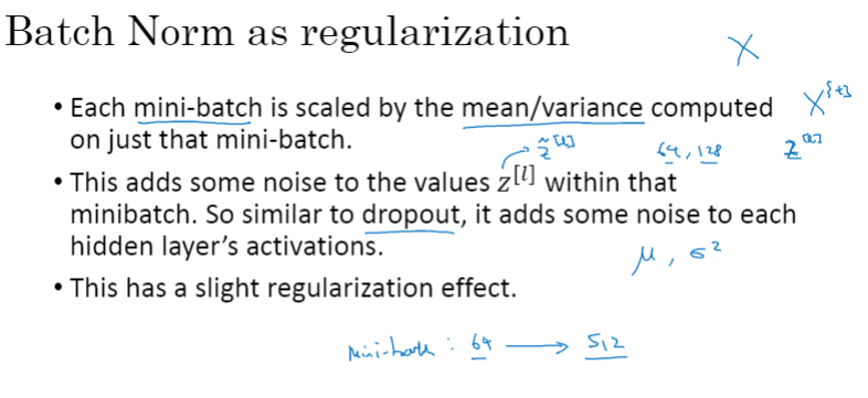 Batch Norm具有轻微的“正则化”效应,但这不是其目的,其目的在于加快训练速度