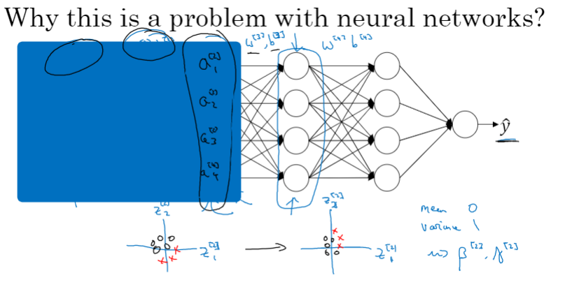 在不同的mini-batch中,激活函数a可能会变化较大,batch norm可使其更加“归一”