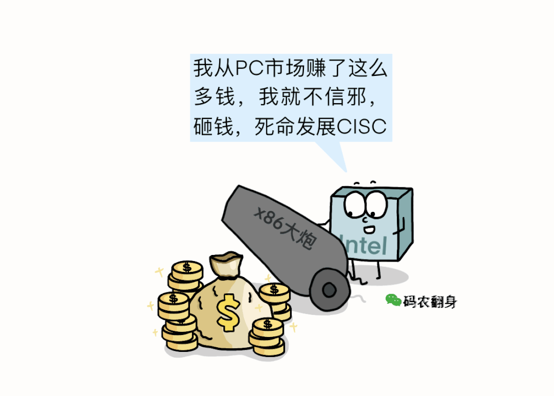 Intel利用从PC市场赚取的巨额利润,不断投入,随着体系结构和微电子技术的进步,CICS在结构上的劣势逐渐消失。