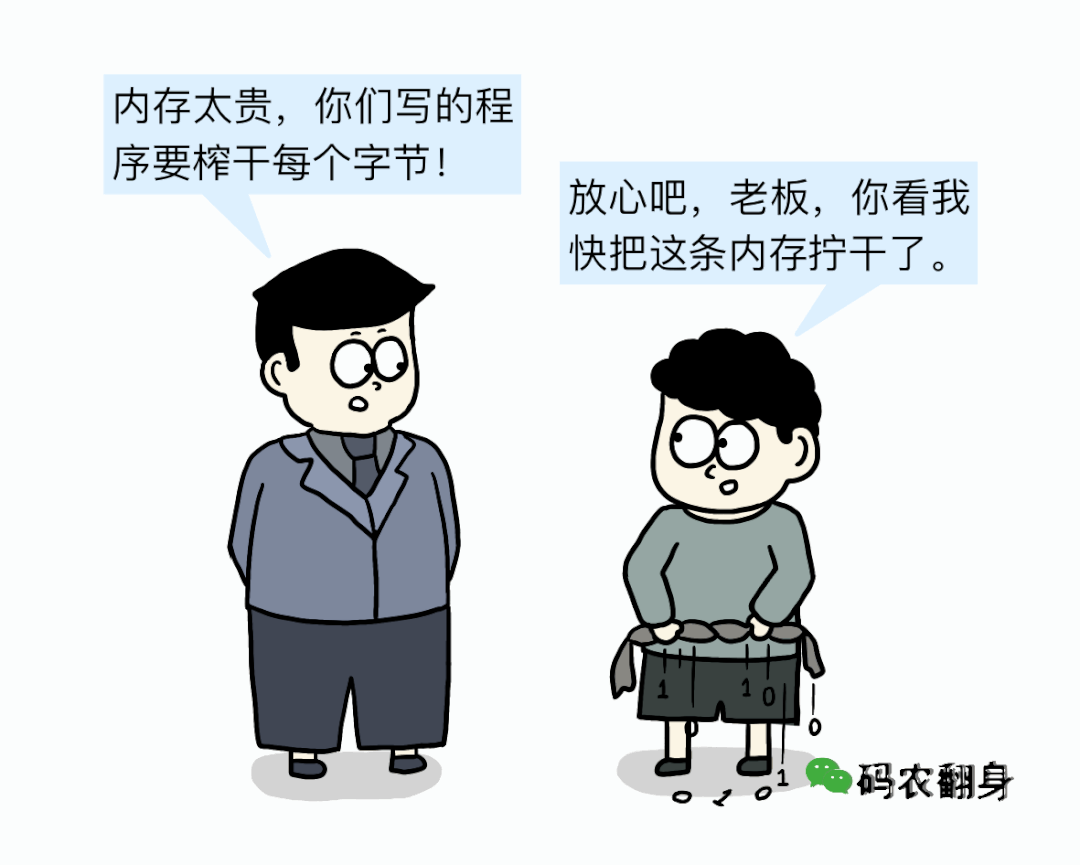 上个世纪70年代,内存又慢又贵, 程序员得想尽一切办法节省内存。