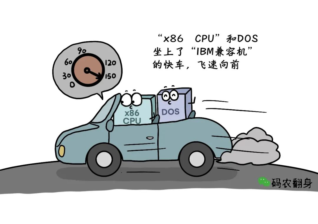 80年代初,Intel 的x86 CPU和微软的DOS被IBM选中,成为了IBM PC兼容机的处理器和操作系统。