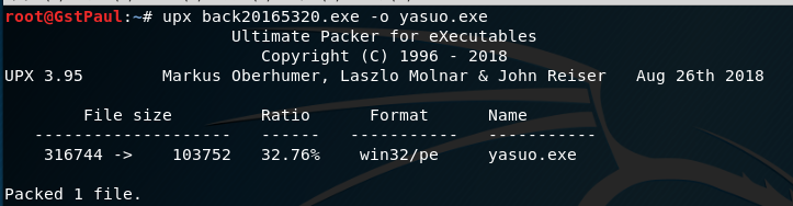 对刚刚生成的半手工shellcode程序加上一个压缩壳,使用指令