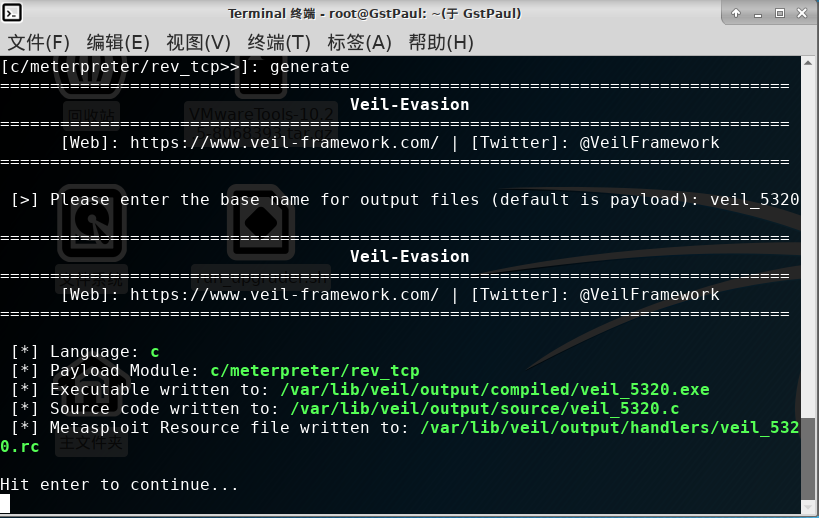 PS:我觉得整个实验最难的部分就是veil的安装了,调试了一个晚上也没能成功,不是安装Python3.4的时候出错,就是卡在展开对象的位置,最后还是拷了同学的虚拟机,总而言之,装东西还是随缘