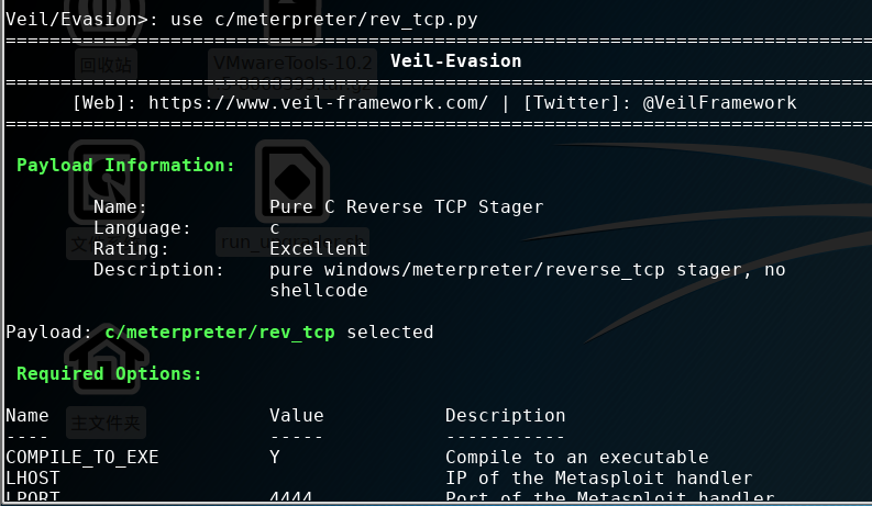 use c/meterpreter/rev_tcp.py开始对后门程序设置相关的参数