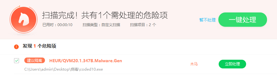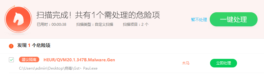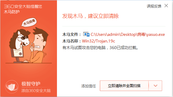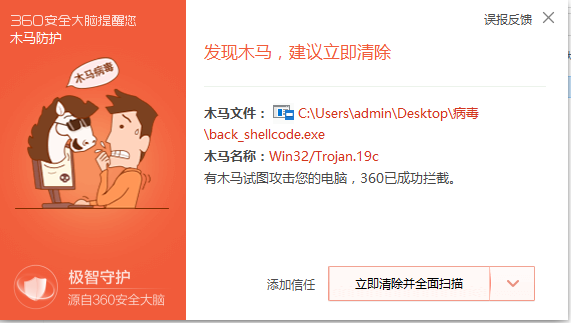 虽然360扫描的时候没发现问题,执行的时候还是被抓住了