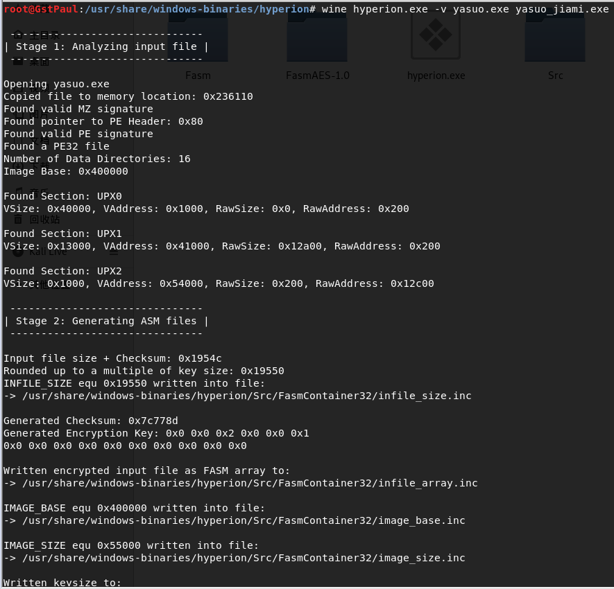 /usr/share/windows-binaries/hyperion/目录,进入该目录,使用命令wine hyperion.exe -v 源文件 目标文件