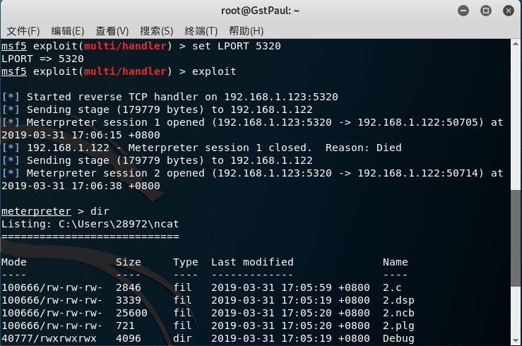 - 使用msf生成其它类型的后门相关命令可以参考网上相关博客:通过Metasploit生成各种后门