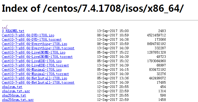 CentOS-7-x86_64-DVD-1708.iso 标准安装版,一般下载这个就可以了(推荐)