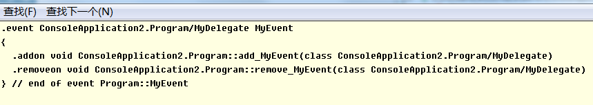 再打开MyEvent事件的IL的IL代码,可以看到出现这样