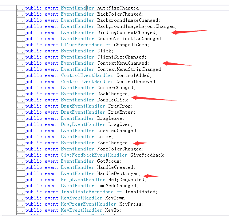 在System.Windows.Forms.Control类型中定义了大约70个事件,