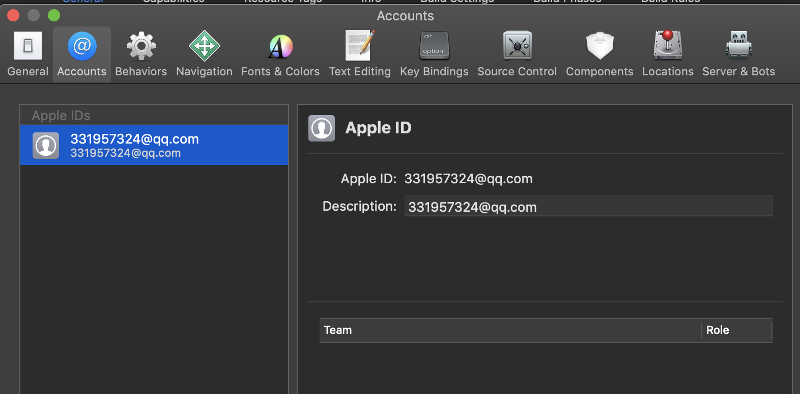 可以通过导航栏Xcode → Preferences → Accounts 添加apple账号
