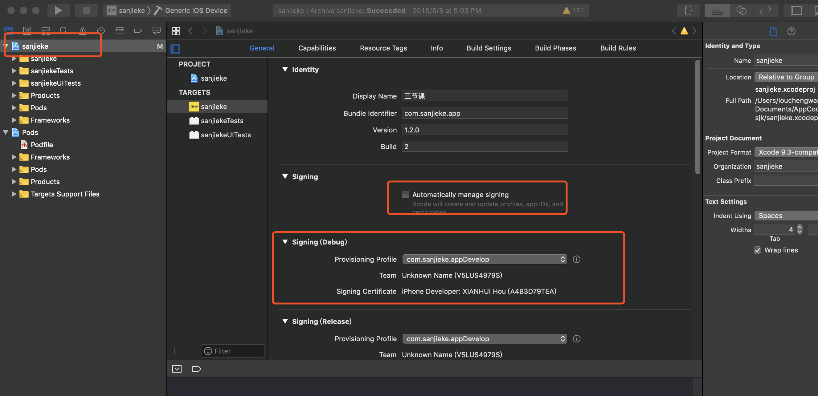 在项目中配置(target→ sanjieke),有个Automatically manage signing,勾选了后选择apple账号就会自动生成配置描述文件