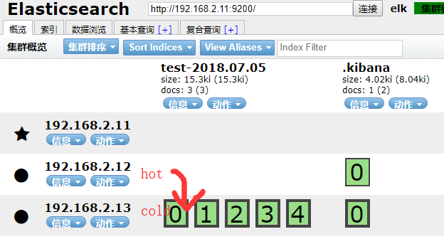 以test-2018.07.05索引为例,将它从hot节点迁移到cold节点