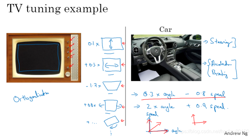 正交化的一个实例:老式电视机的调节按钮(上下、左右、形变等),每个按钮的功能明确而相对对立,即所谓“正交”(orthogonal)