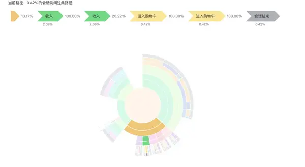 对于业务流程相对规范、周期较长、环节较多的流程分析,漏斗分析能够直观地发现和说明问题所在。企业可以监控用户在各个层级的转化情况,聚焦用户选购全流程中最有效转化路径,找到可优化的短板,提升用户体验。同时科学的漏斗分析能够展现转化率趋势的曲线,能帮助企业精细地捕捉用户行为变化。对提升了转化分析的精度和效率,流程的异常定位和策略调整效果验证有科学指导意义。
