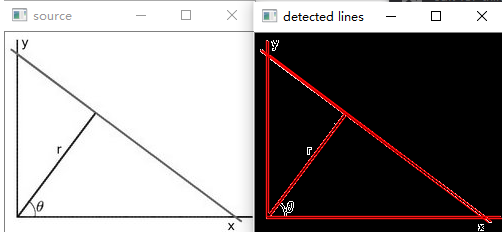 分别在两个窗口显示原图像和绘出检测到直线的图像.