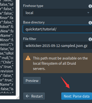 {"type":"index","spec":{"ioConfig":{"type":"index","firehose":{"type":"local","baseDir":"quickstart/tutorial/","filter":"wikiticker-2015-09-12-sampled.json.gz"}},"dataSchema":{"dataSource":"sample","parser":{"type":"string","parseSpec":{"format":"json","timestampSpec":{"column":"time","format":"iso"},"dimensionsSpec":{}}},"transformSpec":{"transforms":[],"filter":{"type":"javascript",