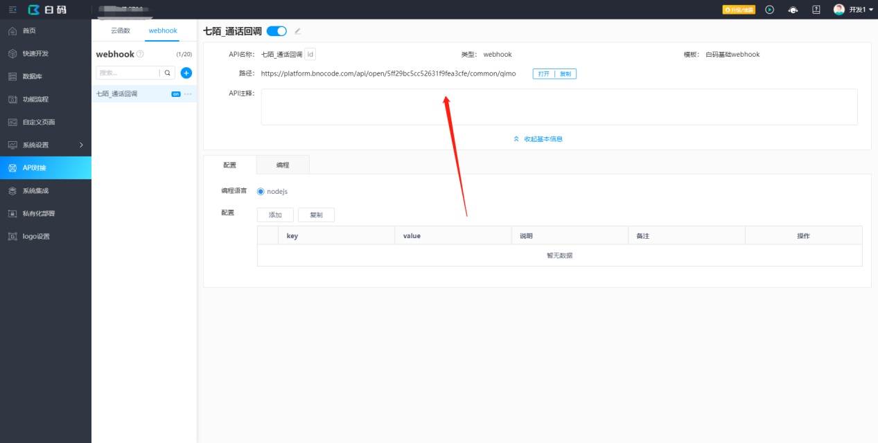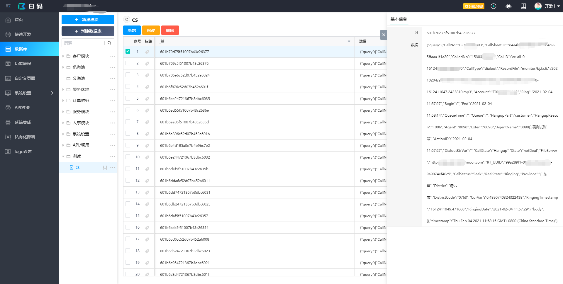 在白码低代码开发平台上对接七陌外呼接口,实现选择客户进行外呼,并保存通话记录的功能。