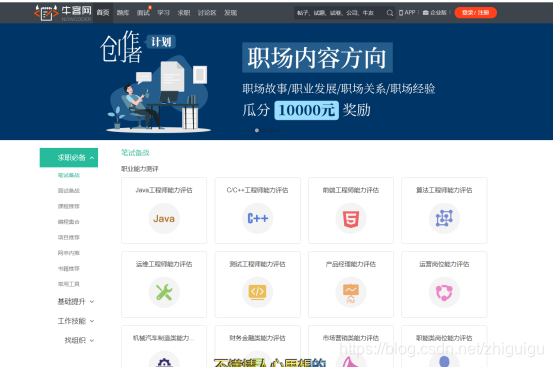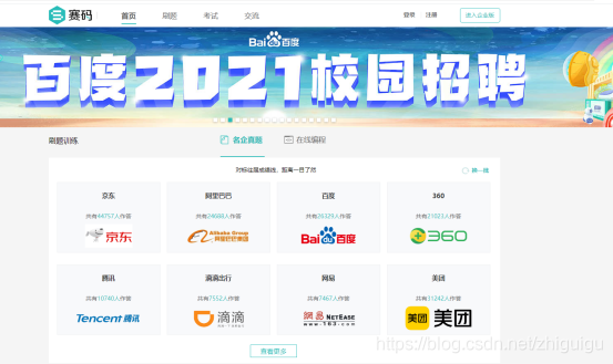 这个网站应该很多人都熟悉,是国内少有IT行业笔面试网站,其内容矩阵涵盖了笔试题库、在线编程练习、线上课程、交流社区、竞赛平台、笔面试服务、ATS系统等,为滴滴、网易、360、蘑菇街、楚楚街等多家企业提供校园招聘、编程竞赛等线上服务。