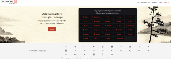 Codewars提供了很多内部的社区人员上传的编程代码挑战,可以用多种代码在编译器中直接在线进行挑战。