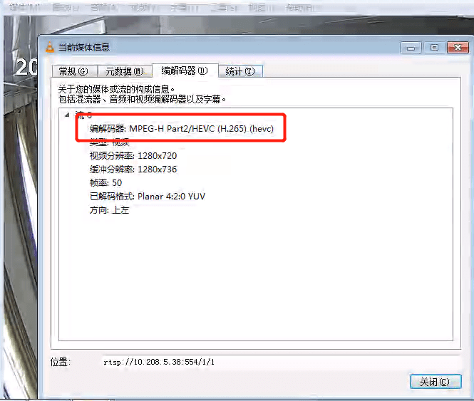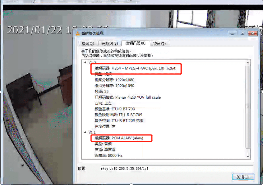 2.使用VLC播放器测试,视频流播放正常。因此将浏览器内不能播放的通道和正常播放的通道同时放在VLC播放器内进行对比,检查摄像头参数的配置是否正确。