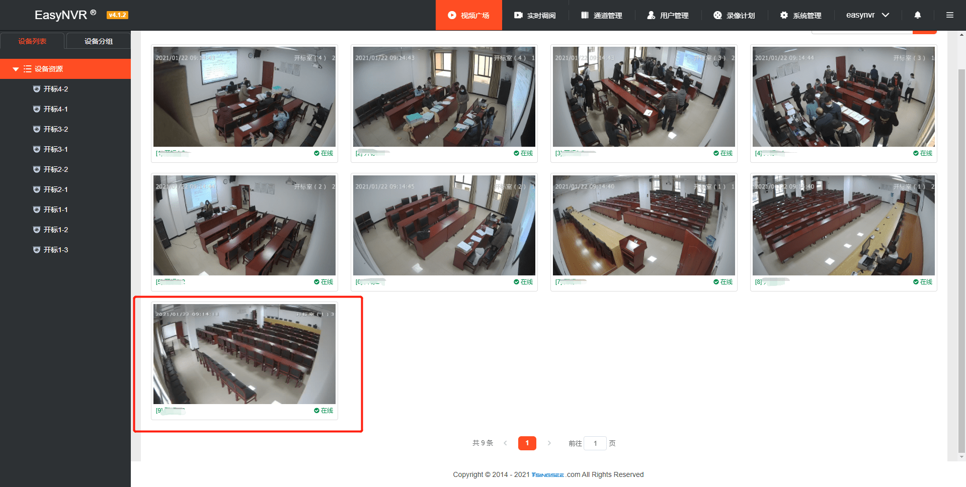 RTSP协议的视频智能分析平台EasyNVR内接入的视频通道可以通过平台进行网页直播,并且支持市面上大部分的RTSP/Onvif协议设备:IP Camera/NVR/DVR/编码器等,直播便捷稳定,是安防直播解决方案中一个不错的选择。