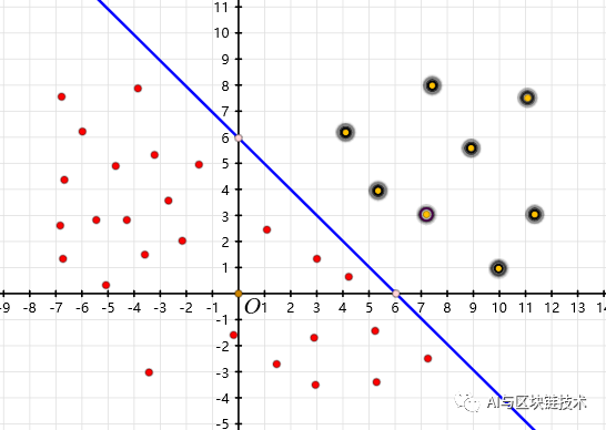 我们可以使用该单层感知机划出一条线将平面分割开: