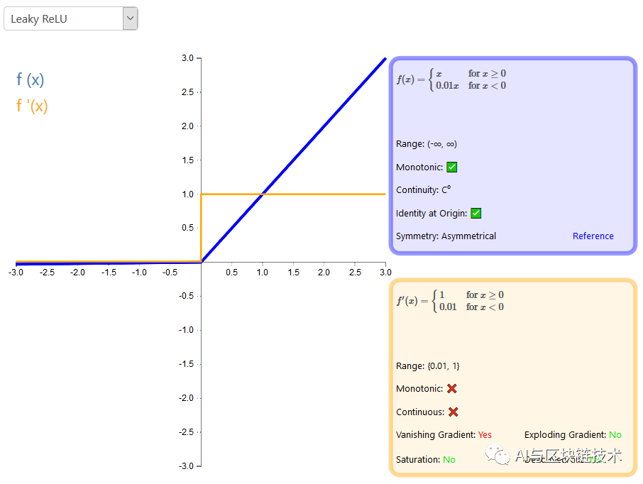 (1)Leaky ReLU:全称为:带泄露修正线性单元(Leaky ReLU)的输出对负值输入有很小的坡度。由于导数总是不为零,这能减少静默神经元的出现,允许基于梯度的学习(虽然会很慢)看下图x左半轴的斜率,几乎感受不到变化,但是这也能很大程度上解决负值被暴力赋值为0,Leaky ReLU的提出是用来解决ReLU带来的神经元坏死的问题。