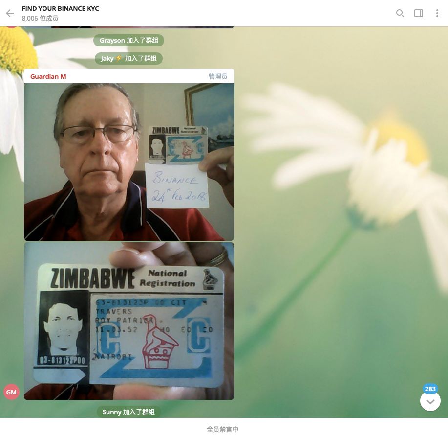 午间,事件在此升级,昵称为Guardian M 的用户在 Telegram 建立“FIND YOUR BINANCE KYC”直播群,并爆料,币安KYC资料遭泄漏。