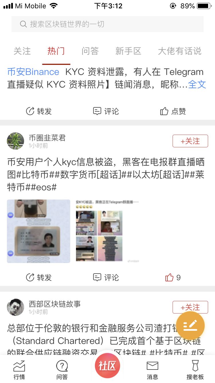 直播发送疑似从币安泄露的用户KYC 资料和照片,以上的KYC 信息均为 2018 年 2 月 24 日的照片,包括全球众多国家的用户。