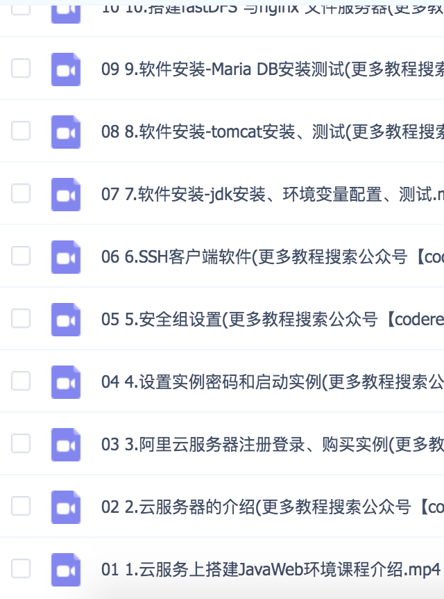 另外,这年头谁还没玩过服务器,都不好意思说自己是程序员。拥有一台服务器可以做很多有意思的事情。例如部署小程序,公众号的后台、搭建个人博客、搭建个人网盘、部署个爬虫,看谁不爽云攻击一下等等。最主要的是很多程序员的副业总是从一台服务器开始的!今天就给大家整理了一套服务器快速搭建的视频教程,以便大家更容易的学习。教程以阿里云为案例,部署了一套前后台分离的javaweb项目,还是非常具有代表意义的。废话不多说了,直接上截图。