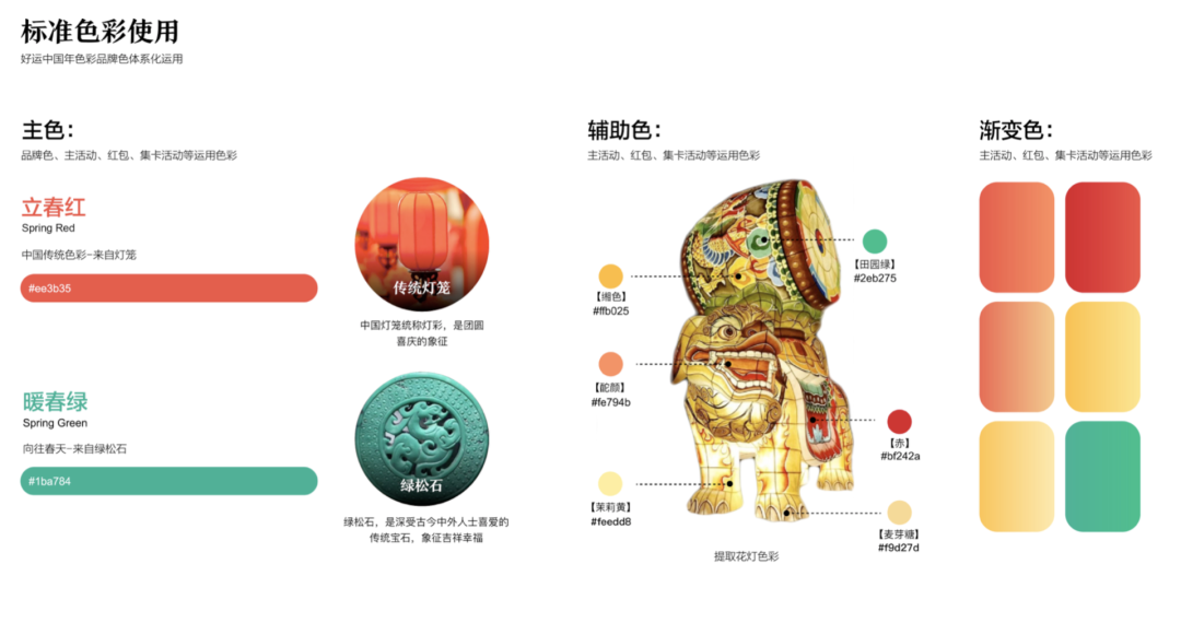这种严谨度还直接体现在看似不起眼的颜色选择上。区别于一到春节就是各种大红配图的App启动页,百度对花灯色彩体系也下了番功夫。