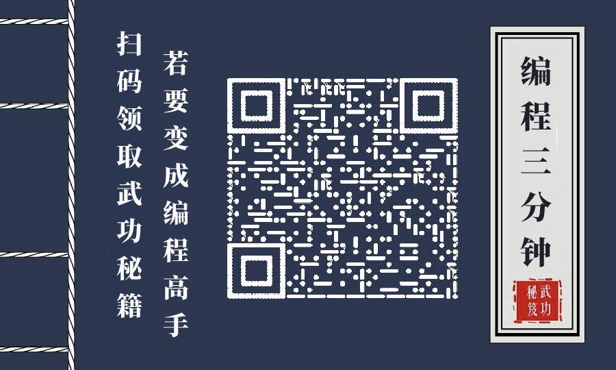 点击上方“编程三分钟”,马上关注,每周不加班时更新。