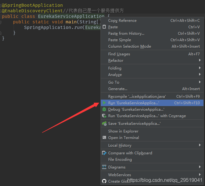 SpringApplication.run(EurekaServiceApplication.class,args);