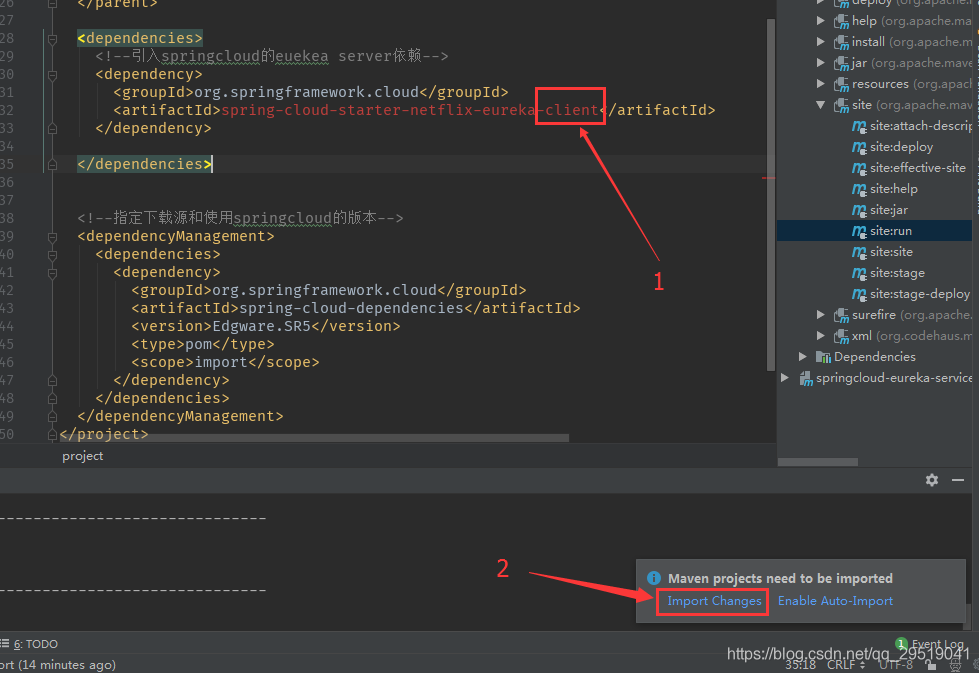 引入Spring Cloud相关依赖 这里为 Edgware.SR5
