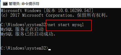 以管理员身份运行命令提示符,输入net start mysql启动服务